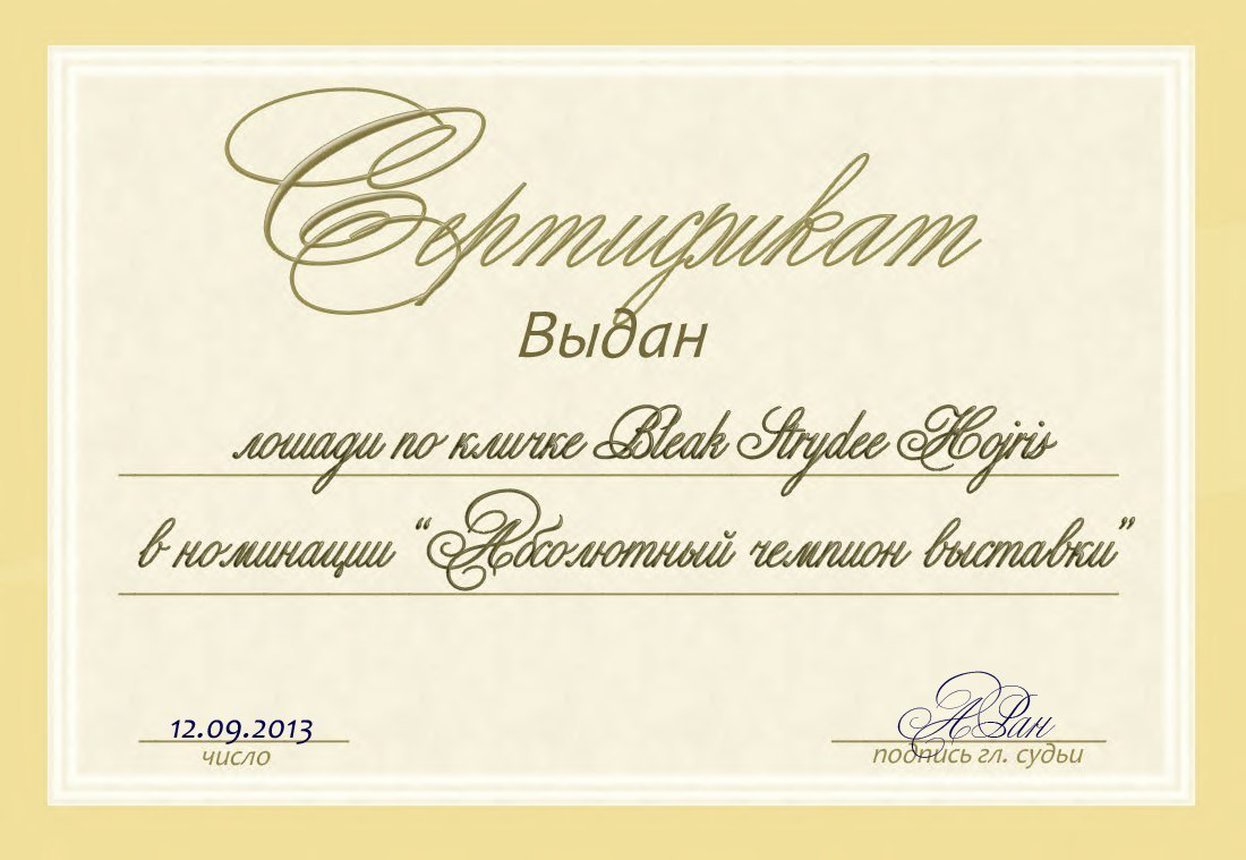 Первый взрослый разряд по конкуру (2008 г). Инструктор по АВЕ. Член Национальной Федерации с 2014 года. Опыт более 10 лет